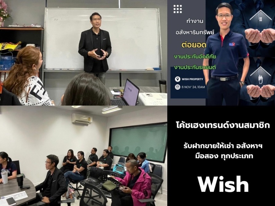 Wish property สัมมนาใหญ่ เคาะ! ข่าวดี เรื่องแผนการตลาด Update เพื่อให้สมาชิกของเรารับฝากขายได้ง่ายขึ้นและช่วยทำให้ลูกค้าขายบ้านได้เร็วขึ้น ร่วมแสดงความยินดีกับสมาชิกที่ติด Top Listing และ Top Com ประจำเดือน เสริมสร้างเนื้อหาการแชร์ของโค้ชเฮง ในหัวข้อ “ทำงานอสังหาริมทรัพย์และงานเสริมเพิ่มรายได้” เพื่อให้สมาชิกบริการลูกค้าได้อย่างครบวงจร