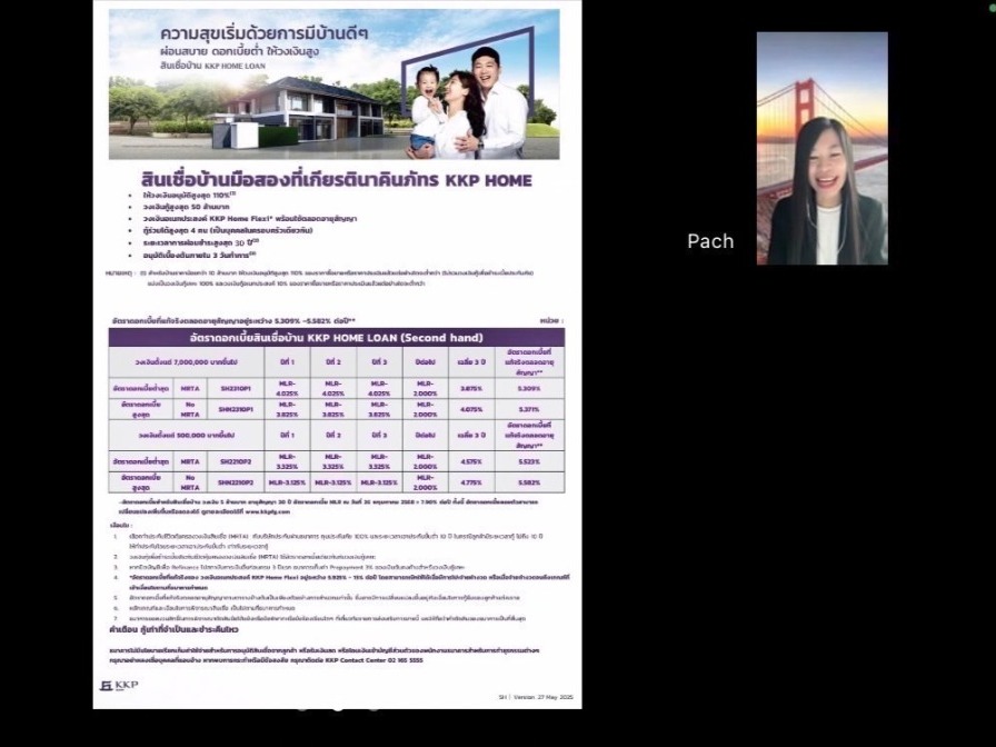 ขอบคุณ คุณพัชรินทร์เจ้าหน้าที่ธนาคารเกียรตินาคินภัทร ที่มาเติมพลังความรู้ในวันนี้! สัมมนาวันนี้ไม่ได้เพียงแค่สัมมนาเท่านั้น แต่คือการเปิดประตูสู่โอกาสให้ลูกค้าที่ใฝ่ฝันมีบ้านมีทางออกในการยื่นกู้สินเชื่อกับ Agent Wishproperty แบบมืออาชีพ