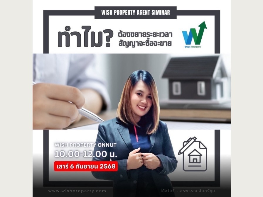 สัมมนา AGENT WISH วันเสาร์ 6 ก.ย. 68  เวลา 10.00-12.00 น.  @บริษัท Wishproperty