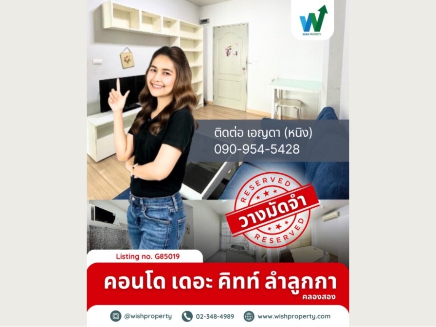 Agent Wish รับมัดจำอีกแล้ว!! คอนโด เดอะคิทท์ ลำลูกกา คลอง 2