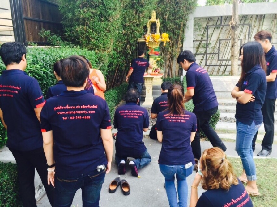 ภาพกิจกรรมการทำบุญบริษัทประจำปี มีการเลี้ยงพระ ไหว้ศาลระจำหมู่บ้าน