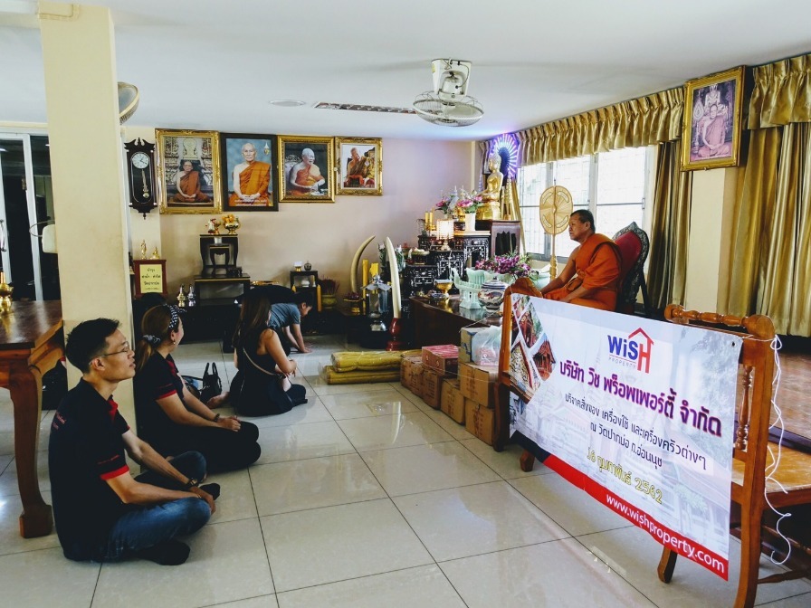 ทางบริษัท และครอบครัว Wish ร่วมกันทำบุญบริจาคสิ่งของเครื่องใช้ ณ วัดปากบ่อ เพื่อให้เป็นศิริมงคลแก่ทางบริษัท ให้ทางวัดนำไปใช้ประโยชน์ และกิจต่างๆของทางวัด