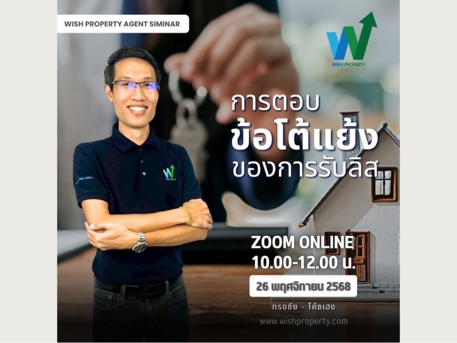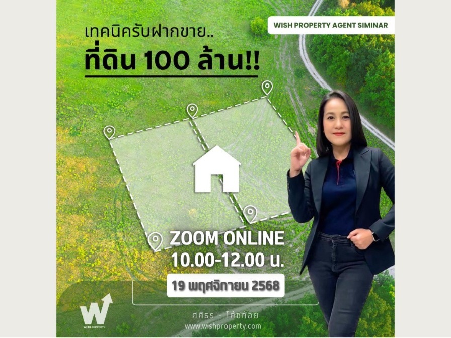 สัมมนา AGENT WISH วันพุธ 19 พ.ย 68 โค้ชก้อย แชร์ เทคนิครับ Listing ฝากขายที่ดิน 100 ล้าน ได้ง่ายๆ ทำยังไง