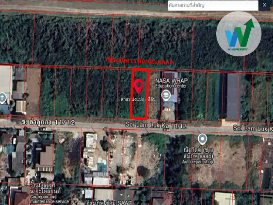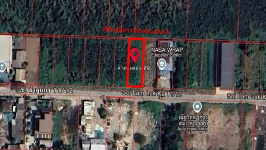 ขายที่ดินเปล่า ซอยลำลูกกา 11/12 เนื้อที่ 100 ตารางวา ห่างจากปากซอยลำลูกกา 11/12 เพียง 450 เมตร หน้ากว้างประมาณ 13 ลึก 33 เมตร เป็นที่ดินจัดสรร ทรงสี่เหลี่ยมผืนผ้า ยังไม่ถม ถนนกว้าง 6 เมตร ผังเมืองสีส้ม เหมาะสำหรับปลูกสร้างที่พักอาศัย โกดังขนาดย่อม อพาร์ทเม้นท์ ใกล้ถนนลำลูกกาแค่ 1.3 กิโลเมตร อยู่ใกล้แหล่งชุมชน
