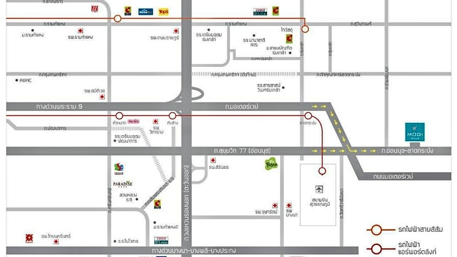 - ใกล้ห้างสรรพสินค้าสยามพรีเมี่ยมเอาท์เล็ต, เดอะพาซิโอลาดกระบัง, เซ็นทรัลวิลเลจ และโรบินสันลาดกระบัง
