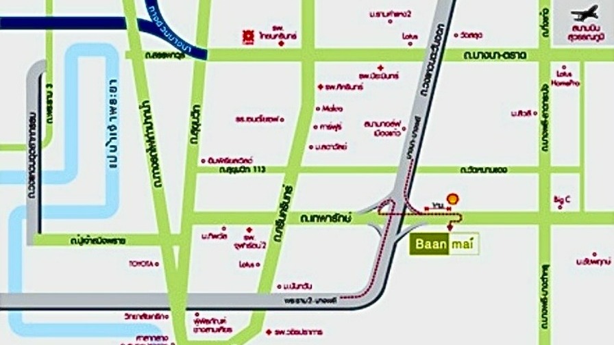 - ใกล้ห้างสรรพสินค้าเมกาบางนา และโรบินสันสมุทรปราการ