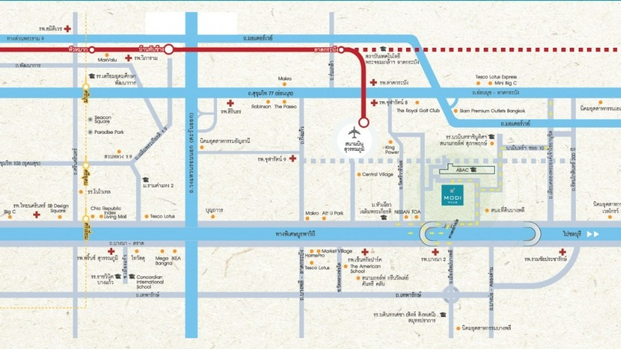 - ใกล้มหาวิทยาลัยอัสสัมชัญ วิทยาเขตสุวรรณภูมิ ABAC บางนา 5 กม.