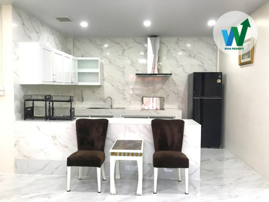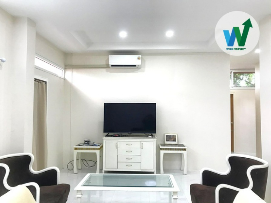 ให้เช่าบ้านเป็นตึกเดี่ยว 3 ชั้น (ให้เช่าชั้น 3 ทั้งชั้น) เนื้อที่ 90 ตร.ว. ภายในพื้นที่กว้างมาก 128 ตร.ม. พร้อมเฟอร์นิเจอร์ใหม่เอี่ยม ทันสมัย ทีวี ตู้เก็บของ ตู้เย็น เครื่องซักผ้า มีแอร์ในห้องนอนทั้ง 2 ห้องและห้องนั่งเล่น เครื่องทำน้ำอุ่น ครัวมีเคาน์เตอร์ เตาไฟฟ้า เครื่องดูดควัน ซิงค์ล้างจาน พัดลมระบายอากาศ ห้องนอนมีตู้เสื้อผ้าขนาดใหญ่ เตียงพร้อมฟูกนอนอย่างดี ยี่ห้อ Sealy จากอเมริกา นอนแล้ว ไม่ปวดหลัง พื้นปูแกรนิตโต้ สีสว่าง สะอาด สบายตา กระจกหน้าต่างติดฟิล์ม กรองแสง มองเห็นภายนอกชัด แต่คนจากข้างนอกจะไม่เห็นภายในบ้าน มีระเบียงด้านข้างและด้านหน้า ใช้นั่งเล่น พักผ่อนหย่อนใจได้ ขอบระเบียงติดตั้งไม้ระแนงอย่างดี เป็นสแตนเลสลายไม้ นำเข้าจากอิตาลี มีผ้าม่าน มุ้งลวด เหล็กดัด ลมพัดเข้าบ้าน เย็นสบาย ไม่ต้องเปิดแอร์ตลอดเวลา บรรยากาศร่มรื่นด้วยต้นไม้เขียวขจี ตึกเพิ่งสร้างเสร็จ ยังไม่เคยมีคนเข้าอยู่ เข้าซอยโกสุมรวมใจ 15 มาเพียง 50 เมตร
