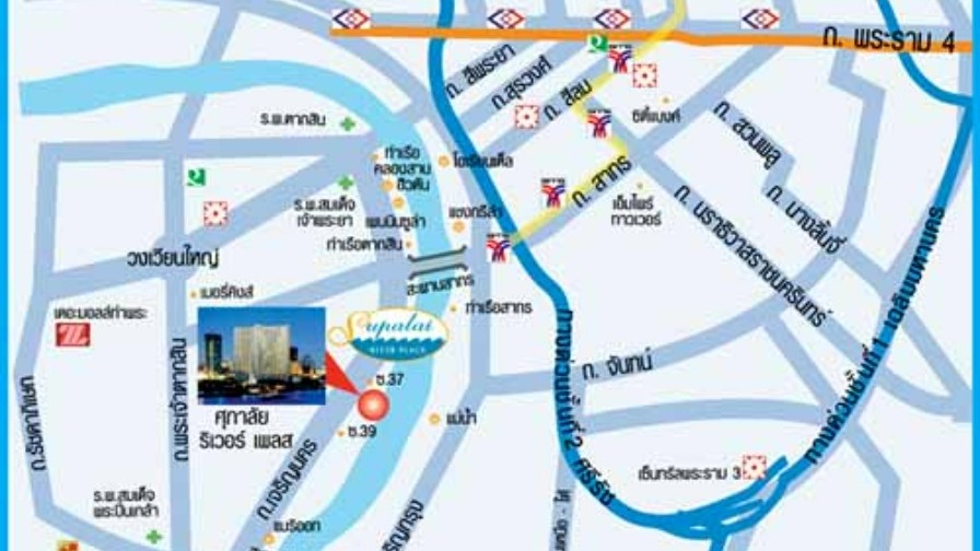 - ใกล้สะพานตากสิน (สาทร) และ สะพานกรุงเทพ
