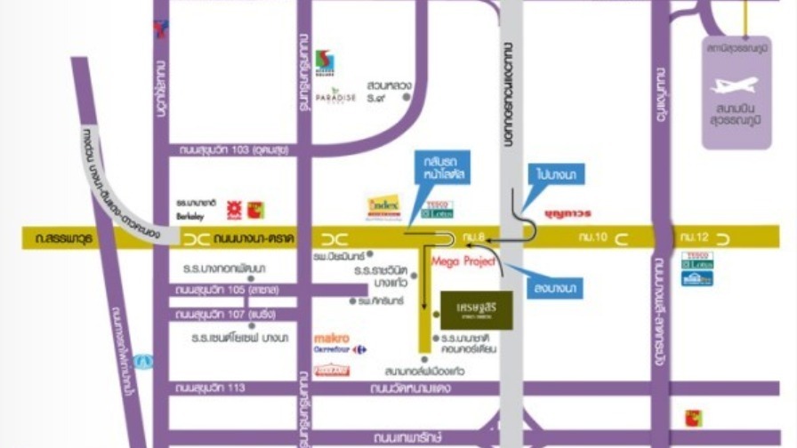 - ใกล้ห้างสรรพสินค้าเมกาบางนา, เซ็นทรัลบางนา, ซีคอนสแควร์, พาราไดพาร์ค, มาร์เก็ตวิลเลจ, โลตัสบางนา, บิ๊กซีบางนา
